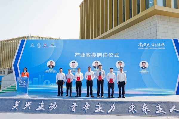 吳興區委常委、高新區黨工委書記楊斌和湖州師范學院人事處處長唐笑敏為“產業教授”頒發了聘書。