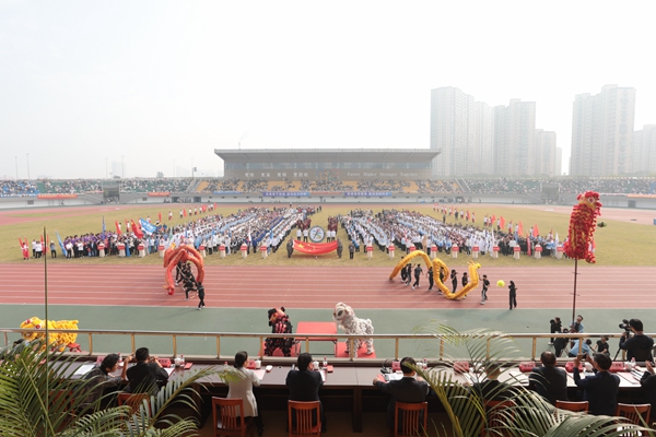 在全校師生們熱烈歡呼聲中,金佩華宣布我校第二十五屆運(yùn)動(dòng)會(huì)開(kāi)幕。