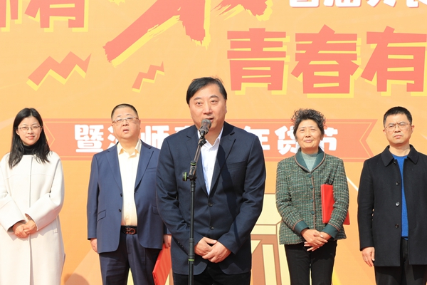 在現場師生們熱烈歡呼聲中,金佩華宣布我校首屆美食文化節暨湖師惠選年貨節開幕。