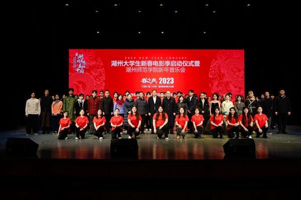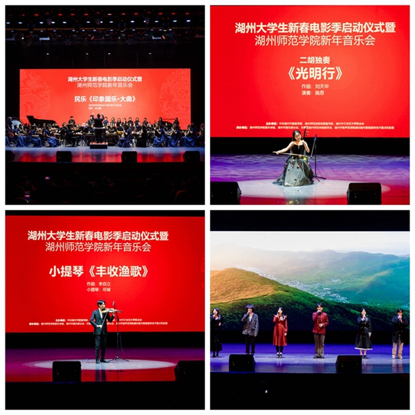 12月27日,觀影有我——2023湖州大學生新春電影季暨湖州師范學院新年音樂會在我校東校區會堂舉行。本次活動由中共湖州市委宣傳部主辦,湖州師范學院、湖州市新聞傳媒中心承辦,湖州學院、湖州職業技術學院、湖州市文旅集團協辦。著名電影藝術家喬榛,省委宣傳部電影處處長蔣余鷹,市委常委、宣傳部部長申中華,我校黨委副書記陳永華,湖州學院黨委副書記唐華,市委宣傳部副部長查建華,市新聞傳媒中心黨委書記、主任陳建良,湖州職業技術學院學工部部長謝飛,湖州市文旅集團黨委書記、董事長施國峰,著名二胡演奏家、教育家,上海音樂學院教授王永德出席。我校800多師生現場觀看。