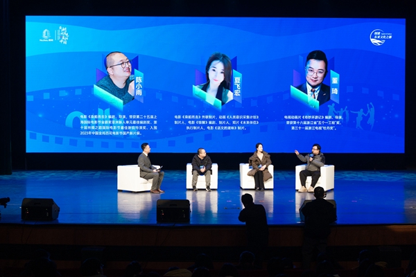 儀式還邀請了三位湖州籍電影人陳小雨、夏飛宏、董琦,與我校師生暢談電影。