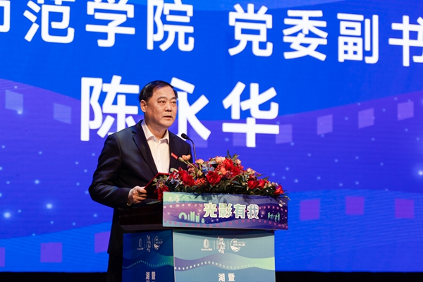 陳永華在致辭中表示,近年來,我校積極融入新時代文化湖州建設,努力助推湖州城市文化內驅力提升,本次活動又是一次繁榮湖州電影文化、助力文化湖州建設的很好機會。電影作為視聽融合的綜合性藝術,是文化傳播的重要載體,也是新時期“以美育人”不可或缺的重要渠道。他希望校地深度合作、持續發力,將湖州大學生電影季辦成有一定影響的文化品牌,希望同學們積極參與、勇于嘗試,全方位拓展提升自己的藝術人文視野、審美旨趣和綜合實踐能力,創作自己的微電影,講好湖師故事、湖州故事、中國故事。