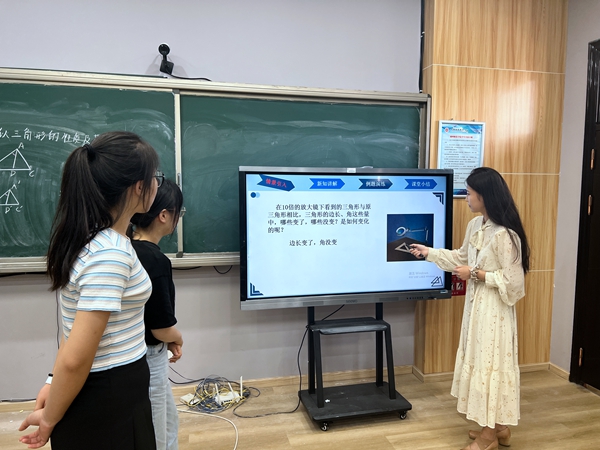 為了提高學(xué)生學(xué)習(xí)興趣與效率,王羅那不斷創(chuàng)新,結(jié)合前沿技術(shù)進(jìn)行可視化教學(xué),直觀生動,讓學(xué)生獲得沉浸式體驗(yàn)。她尤其關(guān)注課堂中學(xué)生的參與度,并充分利用個性化學(xué)習(xí)資源,因材施教。她與學(xué)生通力合作,構(gòu)建項(xiàng)目主題資源庫,共建優(yōu)秀主題課件100余個,優(yōu)秀微課80余個。她主講的“數(shù)學(xué)文化與中學(xué)數(shù)學(xué)”課程,獲評省級線上線下一流本科課程、校級優(yōu)秀思政案例。