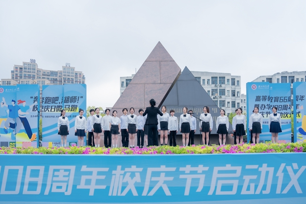 儀式上,校合唱團的學生們演唱《湖州師范學院校歌》《生日快樂》,共同祝福湖師生日。