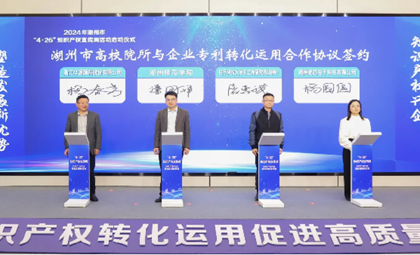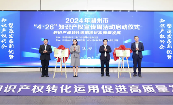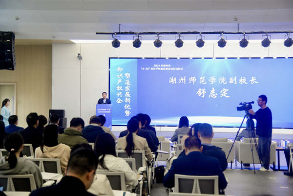 4月22日下午,由湖州市知識產權工作領導小組辦公室主辦,我校與湖州市市場監督管理局(市知識產權局)共同承辦的2024年湖州市“4·26”知識產權宣傳周活動啟動儀式在創新創業大樓報告廳舉行。湖州市委常委、副市長阮葉萍,我校副校長舒志定,市市場監管局局長婁顯杰共同啟動2024年知識產權宣傳周活動。市知識產權工作領導小組成員單位有關領導,區縣有關部門業務科室、高校科研院所、企業、知識產權律師代表,我校圖書館、科技處等部門負責人、師生代表等參加了現場活動。啟動儀式由市政府副秘書長劉一聞主持。