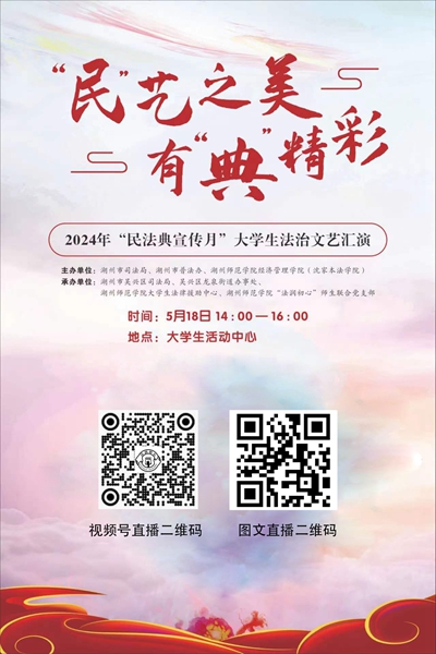 為弘揚(yáng)社會(huì)主義法治精神,增強(qiáng)廣大師生的法治意識(shí),特舉辦“民”藝之美,有“典”精彩——2024年“民法典宣傳月”大學(xué)生法治文藝匯演活動(dòng),歡迎廣大師生參加。