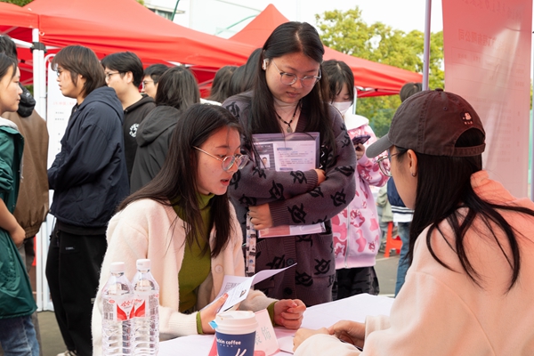 招聘會現場氣氛熱烈,畢業生們手持精心準備的簡歷,主動與意向單位招聘負責人面談,詳細了解工作內容、薪資待遇、發展前景等情況,自信從容地展現自己的能力和優勢。除了招聘展臺外,招聘會現場還精心設置了簡歷專家問診、考公考編咨詢、考研留學服務等6個專區,充分借助校內外專業力量為畢業生提供精準就業指導服務。