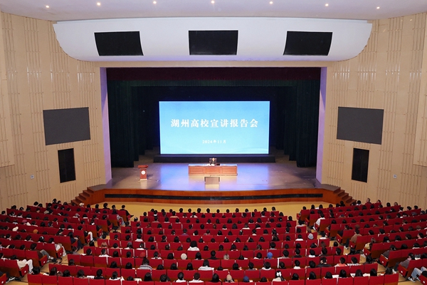 11月20日下午,市委書記陳浩以“我和我的湖州”為題,來校為在湖高校師生代表作宣講報告。副市長石一婷,湖州學(xué)院黨委書記金波,湖州職院黨委書記金淦英,市委秘書長宋波,市直屬有關(guān)部門主要負(fù)責(zé)人,湖州學(xué)院、湖州職院相關(guān)校領(lǐng)導(dǎo),校領(lǐng)導(dǎo)班子成員、中層干部、科級干部,以及三所在湖高校師生代表共1500余人參加宣講報告會。校黨委書記許慧霞主持。