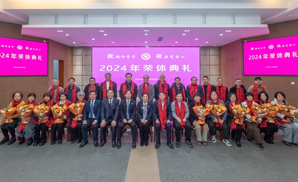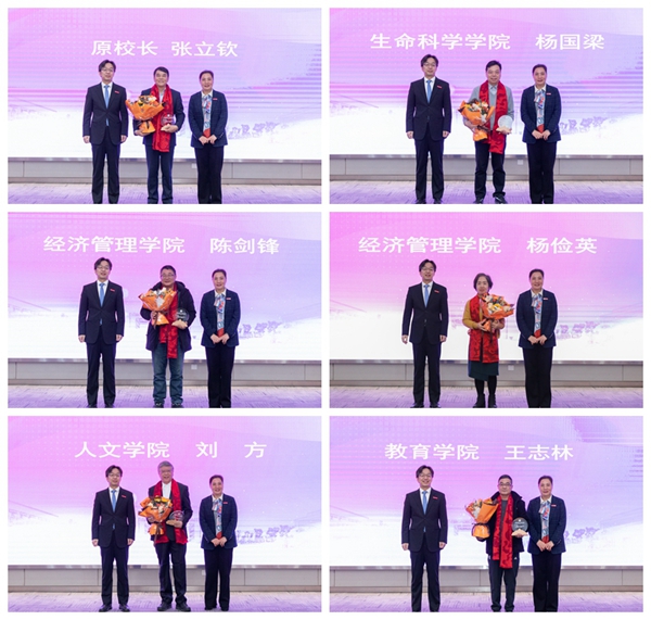 會場上,屏幕滾動播放著榮休教職工從教生涯的影像和對學校的祝愿。今年我校退休教職工共有40位,是學校成立以來退休教職工最多的一年。他們來自17個二級單位,平均工作年限超過36年,其中最長的達43年。他們踐行湖師精神,教書育人、無私奉獻,親歷并推動了學校事業發展,為學校“創大拼‘博’”作出了重要貢獻,是學校永遠的驕傲和寶貴的財富。