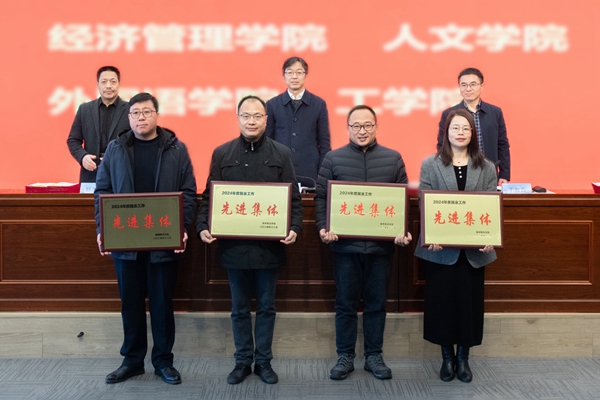 舒志定宣讀表彰文件。經(jīng)濟管理學(xué)院、人文學(xué)院、外國語學(xué)院、工學(xué)院被評為2024年度招生工作先進(jìn)集體;教育學(xué)院(教師教育學(xué)院)、體育學(xué)院、生命科學(xué)學(xué)院、醫(yī)學(xué)院(護(hù)理學(xué)院)被評為2024年度就業(yè)工作先進(jìn)集體;吳勇輝等18人被評為2024年度招生工作先進(jìn)個人;李軍等41人被評為2024年度就業(yè)工作先進(jìn)個人。