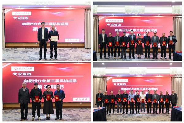 會(huì)上,校友工作辦負(fù)責(zé)人向校友們介紹了學(xué)校的發(fā)展近況和取得的豐碩成績(jī)。朱鴻宣讀了衢州分會(huì)第三屆組織機(jī)構(gòu)成員建議名單。經(jīng)全體與會(huì)校友審議,一致通過(guò)建議名單。李慶峰和朱鴻為衢州分會(huì)新一屆組織機(jī)構(gòu)成員頒發(fā)聘書(shū)。