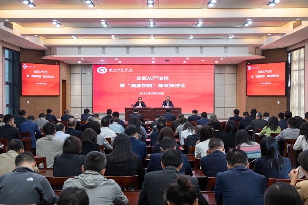 3月26日上午,學(xué)校召開(kāi)2025年全面從嚴(yán)治黨暨“清廉校園”建設(shè)推進(jìn)會(huì)。校黨委書(shū)記許慧霞主持會(huì)議并講話,對(duì)深化全面從嚴(yán)治黨工作作出全面部署,并提出工作要求。校紀(jì)委書(shū)記、監(jiān)察專員任偉海部署紀(jì)檢監(jiān)察工作。校領(lǐng)導(dǎo)班子成員出席,學(xué)校中層干部參加會(huì)議。