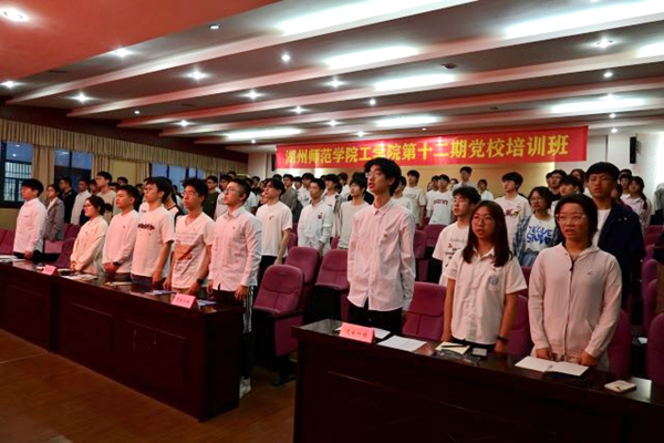 4月10日下午,工學院第十二期黨校培訓班開班典禮在莊嚴的國歌聲中拉開帷幕。工學院黨委副書記陳瑩、學工辦全體輔導員、學生預備黨員代表及本學年新發展入黨積極分子參加本次黨校開班。