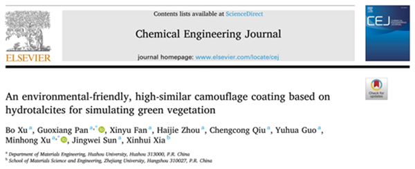 近日,我校工學院材料學科團隊在軍事偽裝材料領域取得突破,研發了一種基于水滑石的環保型叢林偽裝涂層,相關研究成果以“An environmental- friendly, high-similar camouflage coating based on hydrotalcites for simulating green vegetation”為標題發表在材料學知名期刊《Chemical Engineering Journal》(SCI一區TOP,IF=13.3)上,論文第一作者為我校電子信息專業2022級碩士生徐博,潘國祥教授、徐敏虹高級實驗師為共同通訊作者。