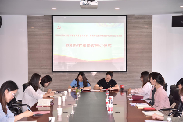近日,教育學院研究生黨支部與湖州市吳興實驗中學教育集團黨支部攜手合作,共同舉辦了一場別開生面的黨建聯建活動。此次活動以“黨建引領聚合力,協同育人啟新篇”為主題,旨在通過深度合作,架起“理論+實踐”的橋梁,探索協同育人的新路徑。教育學院黨委副書記沈衛、研究生黨支部負責人、研究生黨員代表,湖州市吳興實驗中學教育集團黨支部副書記魯瑛瑛、黨員骨干教師代表等參加。活動由吳興實驗中學教育集團黨政辦副主任李灝老師主持。