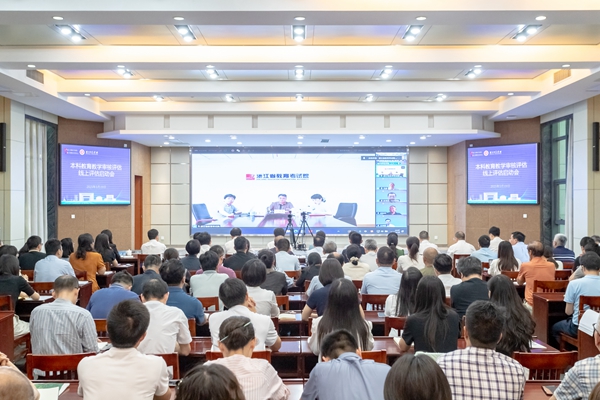 5月19日,我校召開本科教育教學審核評估線上評估啟動會,會議以“線上+線下”相結合形式召開。審核評估專家組組長、江蘇師范大學原黨委書記方忠,副組長、臺州學院校長樂傳永,專家組全體成員、項管秘書組,浙江省教育考試院黨委委員、院長徐繼彬,浙江省教育廳高教處二級調研員王國銀,浙江省教育考試院研究室副主任、浙江省教育評估中心高教評估所所長林瑞玉,浙江省教育考試院研究室、浙江省教育評估中心高教評估所副所長薛玉剛,我校全體領導班子成員等以線下或線上方式參會。會議由林瑞玉主持。
