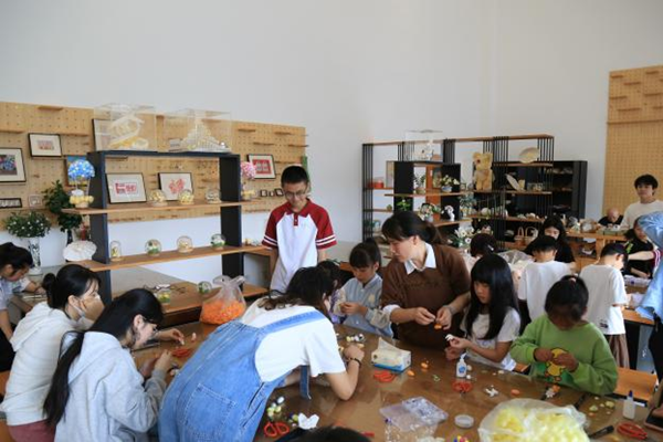 活動尾聲,孩子們化身非遺小傳人,自信講解創作理念,并與自己的作品開心合影留念。張新江指著一排排琳瑯滿目的文創產品感慨:“當孩子們把蠶繭看作朋友而非商品,把工藝制作視為游戲而非任務,文化傳承便有了最自然的生命力。”
