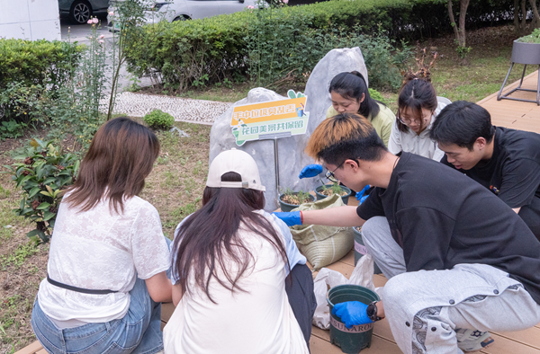 在充滿生機的生命花園,大家分工協作,清理雜草、修剪枯枝、撿拾垃圾,為綠植澆水施肥。在畢業生們的精心打理下,花園重現盎然生機。