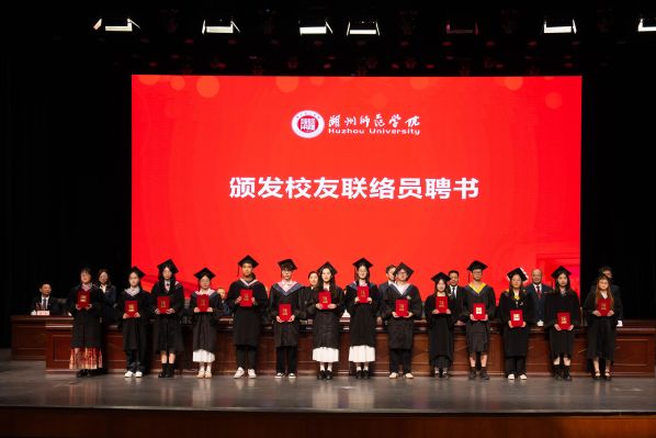 許慧霞為省優(yōu)秀畢業(yè)生代表頒發(fā)榮譽(yù)證書。校領(lǐng)導(dǎo)班子成員為校友聯(lián)絡(luò)員頒發(fā)聘書。