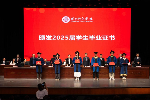 舒志定宣讀2025屆畢業(yè)生和省優(yōu)秀畢業(yè)生名單,校黨政領(lǐng)導(dǎo)班子為畢業(yè)生代表頒發(fā)畢業(yè)證書。