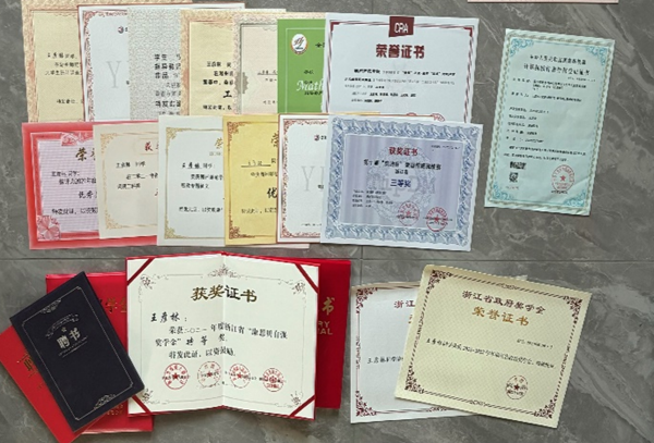 除了科研訓練,王彥林還參加了“正大杯”第十二屆全國大學生市場調查與分析大賽、浙江省大學生物理創新(理論)競賽等多個A類競賽并取得了優異成績。多路徑的嘗試也必然意味著會遇到更多的困難,但王彥林直言,正是這些困難和挑戰讓自己發生了蛻變。“記得曾經聽過一位教授說過類似的話,‘當你覺得面對困難很艱難的時候,那正是你提升的時候。’這句話給了我很大的啟發。它提醒我,困難與挑戰并不可怕,反而是一個機會,一次成長的契機。”