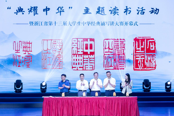 為深入學(xué)習(xí)貫徹習(xí)近平文化思想,傳承弘揚中華優(yōu)秀傳統(tǒng)文化,增強青年文化自信,6月28日下午,“典耀中華”主題讀書活動暨浙江省第十三屆大學(xué)生中華經(jīng)典誦寫講大賽啟動儀式在我校舉行。此次大賽由浙江省教材委員會(浙江省語言文字工作委員會)、浙江省大學(xué)生科技競賽委員會主辦,湖州師范學(xué)院與國家語言文字推廣基地(湖州師范學(xué)院)承辦,浙江省語言文字工作者協(xié)會指導(dǎo)。