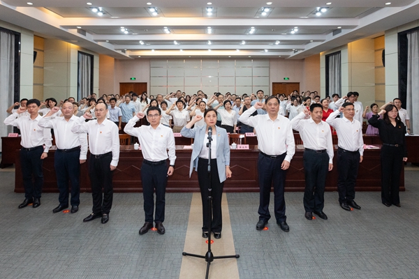在學校舉行的慶祝中國共產黨成立104周年主題黨日活動上,130余名師生黨員在校黨委書記許慧霞的帶領下,面向鮮紅的黨旗,高舉右拳,莊嚴宣誓。外國語學院黨委、圖書館黨總支等也組織了師生黨員重溫入黨誓詞,并深情合唱《沒有共產黨就沒有新中國》,表達了對黨的無限忠誠和熱愛。