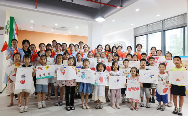 理論宣講后,大學生實踐隊隊員與社區青少年共同參與“紅心繪黨旗”現場活動。在潔白的畫紙前,參與者以畫筆勾勒紅色印記,用色彩表達愛黨情懷,將抽象的紅色教育轉化為可感可知的實踐體驗,實現了從“傾聽者”到“創作者”的角色轉變。