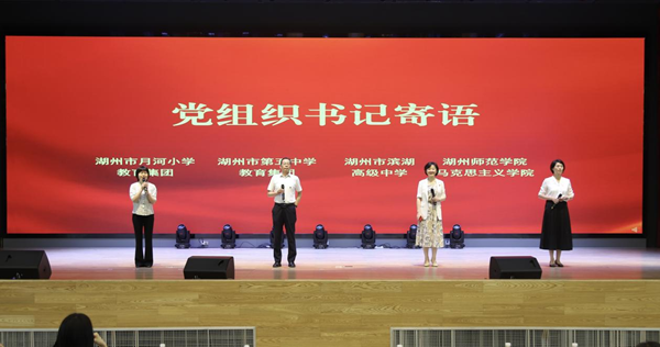 6月30日上午,為深入推進大中小學思想政治教育一體化建設,馬克思主義學院聯合中小學共同開展“紅色基因 薪火相傳”主題黨團隊日活動,以黨、團、隊育人鏈條的銜接貫通向黨的生日獻禮。湖州市濱湖高級中學黨委書記張蔚,湖州市第五中學教育集團黨委書記鄭根強,湖州市月河小學教育集團黨委書記余仙鳳,馬克思主義學院黨總支書記許金鳳、副院長李秀娟、黨總支副書記秦珊及各學校師生代表等參加活動。