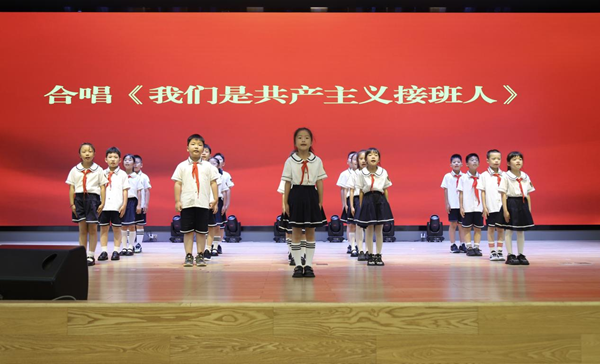 活動中,少先隊員們合唱《我們是共產主義的接班人》;濱湖高中師生獻唱《唱支山歌給黨聽》;大中小學生代表聯袂獻上詩朗誦《七月 紅的火》,激昂的文字在抑揚頓挫中勾勒百年征程,將活動推向高潮。紅色旋律與青春誓言在會場共振,化作青春擔當的時代回響,讓信仰的火種在不同學段的心靈間燎原傳遞。