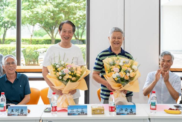 座談會上,同學們向班主任許云生老師和輔導員陳永昊老師送上鮮花和美好祝福。現場特別展示了班級同學為本次返校活動創作的十余篇原創詩歌作品,字里行間洋溢著對恩師、同窗和母校的深厚情誼。班主任許云生深情寄語同學們保重身體,守護好家庭的和美安康。輔導員陳永昊分享了自己的工作與人生感悟,與同學們共同追憶往昔相處的美好時光。8202班班長、衢州校友會會長徐朝金代表全班同學表達了對母校和恩師的感激之情,并表示會一如既往地關心和支持母校發展。在場同學紛紛發言,暢敘同窗情誼,感念母校培育之恩。