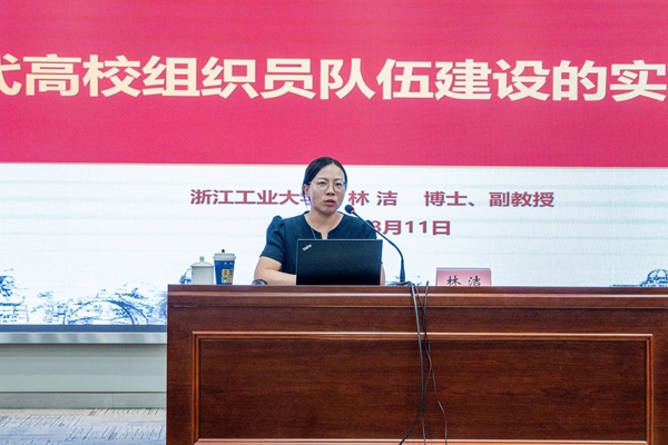 啟動會后,舉行了第一期“明達先鋒”黨建論壇,浙江工業大學黨委組織部副部長林潔應邀作《新時代高校組織員隊伍建設的實踐與思考》專題報告。她深入闡明加強高校組織員隊伍建設的重大意義,分析了當前面臨的機遇與挑戰,提出了構建“選育管用”全鏈條建設體系的對策路徑,激勵全體組織員努力成為“政治忠誠、專業過硬、擔當盡責”的精兵,以隊伍質量躍升共同鑄就高校黨建的“浙江樣板”。