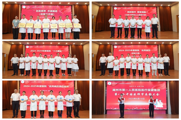 8月19日,是第八個中國醫師節。為了弘揚醫者精神,表彰先進典型,激勵擔當奮斗,湖州市第一人民醫院醫療保健集團、湖州師范學院附屬第一醫院舉辦表彰大會。校黨委書記許慧霞、黨委副書記陳永華,湖州市衛生健康委員會黨委副書記、副主任胡小軍出席會議,集團總院與各院區領導,科室主任及醫師代表參會。會議由醫院黨委副書記、院長王偉洪主持。