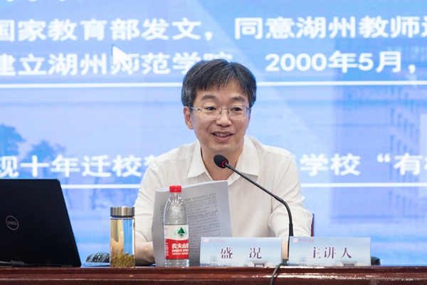 9月6日上午,副校長(主持行政日常工作)盛況以“牢記殷殷囑托 扛起使命擔(dān)當(dāng),在踐行教育家精神中續(xù)寫學(xué)校高質(zhì)量發(fā)展精彩華章”為題,為全體新教工上了“校長第一課”。盛況代表學(xué)校對新教工的加入表示熱烈歡迎,他從綠水青山就是金山銀山理念誕生地、中國美麗鄉(xiāng)村發(fā)源地、“生態(tài)+”綠色發(fā)展先行地、鄉(xiāng)村振興先行地四個金名片出發(fā),與全體新教工分享了湖州市人文薈萃、山水清麗、生活便捷、社會和諧的特色。