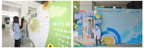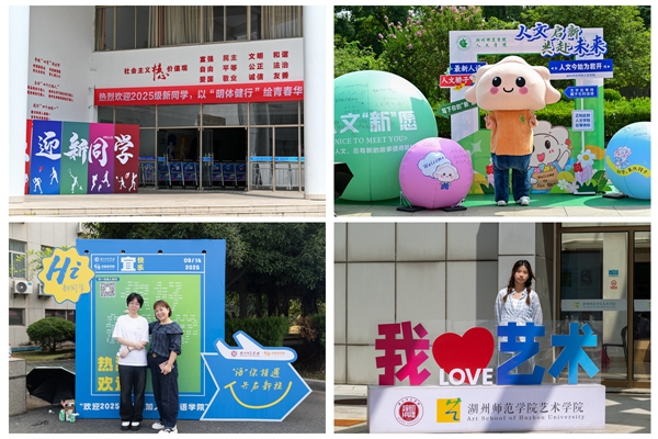 迎新當日,校園里到處洋溢著青春活力,迎新工作開展得如火如荼。校團委組織志愿者團隊在校內及湖州高鐵站開展接站服務,為新生講解校園建筑布局、特色場館與學習生活經驗,各社團以“破土 新生 綻放”為主題設置特色打卡點,為新生記錄入學珍貴瞬間,積極營造開放熱情、創意紛呈的校園文化氛圍。
