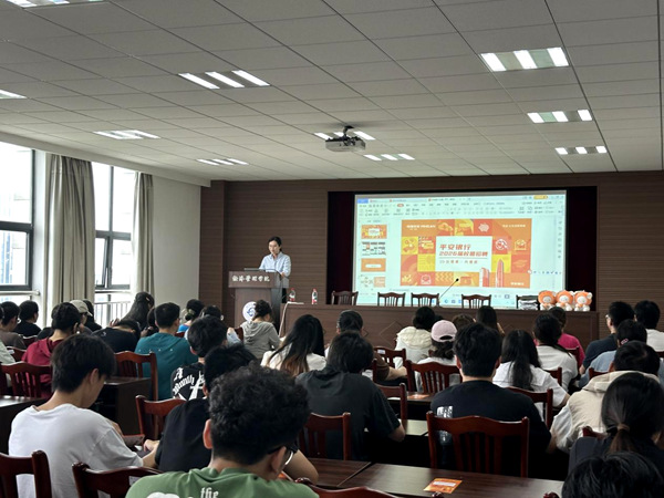 在金融行業(yè)秋季校園招聘黃金期,為精準對接畢業(yè)生就業(yè)需求,為學生搭建與企業(yè)面對面交流的平臺,近日,經濟管理學院開展金融行業(yè)宣講系列活動,先后邀請申萬宏源集團、平安銀行湖州分行、中國建設銀行湖州分行來到學院,與2026屆應屆畢業(yè)生交流金融行業(yè)從業(yè)現狀,介紹企業(yè)優(yōu)勢與應聘流程,吸引眾多學子到場聆聽。