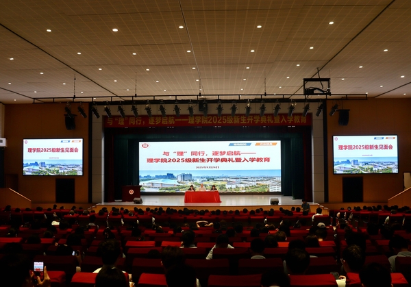 9月24日晚,理學院在中校區(qū)大學生活動中心舉行2025級新生開學典禮暨入學教育。院長沈彩萬、黨委書記畢玉鳳、副院長顧海霞,各系主任、新生班主任、輔導員和2025級全體新生參加。