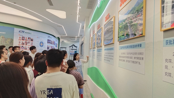 活動現(xiàn)場,展示館化作“移動課堂”,吳湘老師以獨特的講述風(fēng)格、生動的案例解析,為同學(xué)們搭建起理論與實踐的橋梁。從“兩山”理念的萌芽起源,到落地生根后的發(fā)展壯大,吳湘老師通過一樁樁鮮活的歷史故事、一幕幕真實的實踐場景,引導(dǎo)同學(xué)們追溯理念演進(jìn)脈絡(luò)。同學(xué)們不僅深刻理解了“兩山”理念對中國生態(tài)文明建設(shè)的指導(dǎo)意義,更清晰認(rèn)識到這一思想為全球可持續(xù)發(fā)展貢獻(xiàn)的中國智慧與中國方案,理論學(xué)習(xí)逐步轉(zhuǎn)化為身臨其境的體悟。