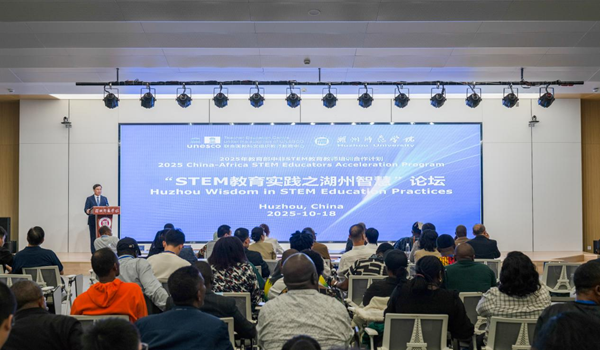 10月18日,教育部中非STEM教育教師培訓(xùn)合作計(jì)劃“STEM教育實(shí)踐之湖州智慧”論壇在我校舉辦。我校副校長(zhǎng)樓建林、聯(lián)合國(guó)教科文組織教師教育中心“中非STEM教育教師培訓(xùn)合作計(jì)劃”負(fù)責(zé)人宋佳、湖州市教育局副局長(zhǎng)施曉紅、吳興區(qū)教育局局長(zhǎng)朱晨旭出席,我校教務(wù)處、國(guó)際交流合作處、外國(guó)語(yǔ)學(xué)院、理學(xué)院負(fù)責(zé)人,湖州市三縣兩區(qū)STEM教研員、師生代表,與來(lái)自非洲11個(gè)國(guó)家近60名教育行政官員、高校學(xué)者及中小學(xué)教師代表等齊聚一堂,共話中非STEM教育。