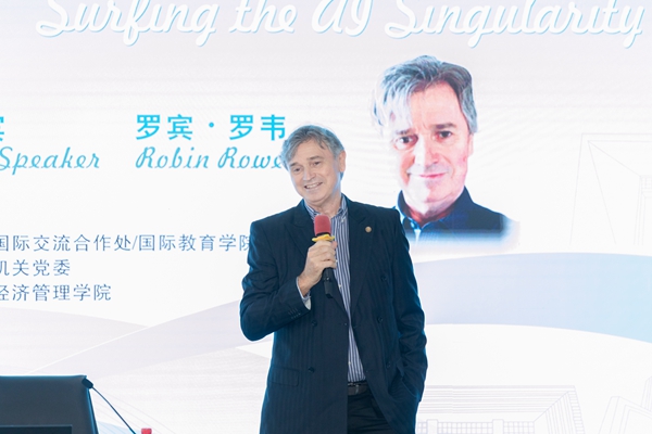 在報告中,羅韋先生結合其在聯合國國際電信聯盟、世界衛生組織、DARPA及美國海軍研究生院等機構的豐富項目經驗,深入剖析了人工智能技術當前的發展態勢和未來走向。他圍繞人工智能的發展概念,系統闡述了AI在教育、醫療健康、商業創新等領域的革命性機遇,同時也指出了其在倫理規范、數據隱私和網絡安全等方面帶來的嚴峻挑戰。在互動環節,現場學生踴躍提問,就AI技術倫理邊界、未來職業影響等話題與專家進行了深入交流,氣氛熱烈。