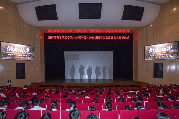 11月12日下午,我校2025級醫學生宣誓暨白衣授予儀式在東校區會堂舉行。校黨委副書記丁敢真,湖州市衛生健康委副書記、副主任胡小軍,優秀校友代表,附屬第一醫院、附屬中心醫院領導和醫護代表,校黨委宣傳部、學工部、團委等部門負責人,醫學院(護理學院)領導班子、系部主任、師生代表、2025級全體醫學新生近500人參加。