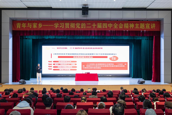 馬克思主義學院教師陳晨以《時代召喚與現實圖景——四中全會精神引領大學生就業新征程》為題,作黨的二十屆四中全會精神專題宣講,并發布了由校團委與馬克思主義學院共同策劃的實踐課題。課題聚焦“青年與家鄉”,圍繞“產業振興與青年機遇”“人才振興與青年角色”“文化振興與青年傳承”“生態振興與青年行動”“組織振興與青年參與”五大方向,鼓勵學生在返鄉實踐中發現問題、分析問題,運用專業知識提出解決方案,引導學生在服務家鄉的實踐中深化對黨的創新理論的理解,實現知行合一。