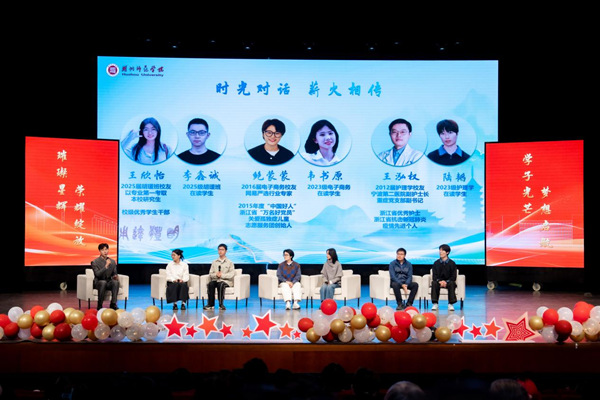 現(xiàn)場,優(yōu)秀本科生代表陳雨悅、研究生代表林森豪分享了他們的追光心路;生命科學(xué)學(xué)院20230911班帶來班級風(fēng)采展示,展現(xiàn)了同窗之誼、集體之魂。優(yōu)秀校友代表、2025屆小學(xué)教育(胡瑗班)畢業(yè)生王欣怡,網(wǎng)易嚴(yán)選貿(mào)易有限公司鮑蒙蒙,寧波市第二醫(yī)院重癥醫(yī)學(xué)科副護(hù)士長、重癥黨支部副書記王泓權(quán),與在校生代表李鑫誠、韋書原、陸韜,在傳承與對話中接力師院精神。