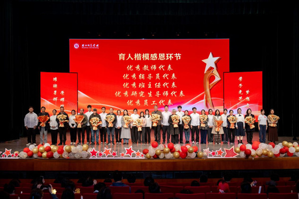 今年的典禮特別設(shè)置了感恩回饋環(huán)節(jié),15位優(yōu)秀教師、優(yōu)秀輔導(dǎo)員、優(yōu)秀班主任、優(yōu)秀研究生導(dǎo)師、優(yōu)秀員工代表上臺接受學(xué)生獻(xiàn)花。歐陽成、劉方、王學(xué)文、郭玉華、王瑞琴老師寄語在場新生,在特別制作的視頻獻(xiàn)禮中,他們“擁抱”數(shù)十年前的自己,完成了一場跨越時(shí)空的、與青春的重逢。退休教工明達(dá)合唱團(tuán)演唱《同一首歌》,帶著歷經(jīng)時(shí)光卻依舊滾燙的赤誠之心別樣演繹歌曲《少年》,完成了師生同心、薪火相傳的精神傳承。