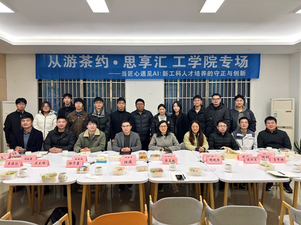 11月20日下午,工學院于明德樓一樓從游居承辦“從游茶約”師生互動交流活動。活動主題為“當匠心遇見AI:新工科人才培養的守正與創新”。校黨委副書記丁敢真出席,學工部相關負責人,工學院領導班子及師生代表共同參與了本次交流。