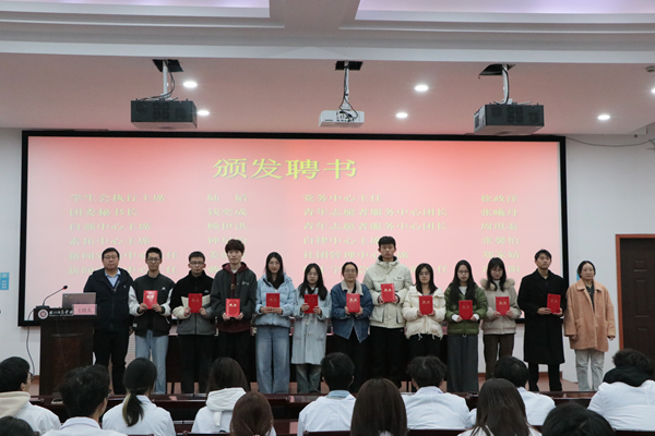 董建新、施靜共同為新一屆主席團(tuán)成員頒發(fā)聘書。施靜宣讀了本期團(tuán)校的分班安排與學(xué)員須知,明確了學(xué)習(xí)紀(jì)律與行為規(guī)范。團(tuán)委秘書長(zhǎng)錢奕成同學(xué)詳細(xì)介紹了團(tuán)校的考勤制度與考核辦法。