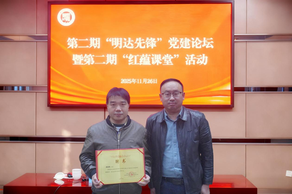 程龍在總結時表示,本次專題報告為組織員開展黨建研究工作提供了清晰方法路徑,對破解黨建研究難題、提升實務工作水平具有重要指導意義。他建議全體參會人員積極推動黨建研究與工作實踐深度融合,持續提升履職能力,充分發揮組織員先鋒引領作用,為高校黨建工作高質量發展貢獻力量。講座結束后,程龍為肖劍忠頒發“紅蘊人文”組織員工作室導師聘書。