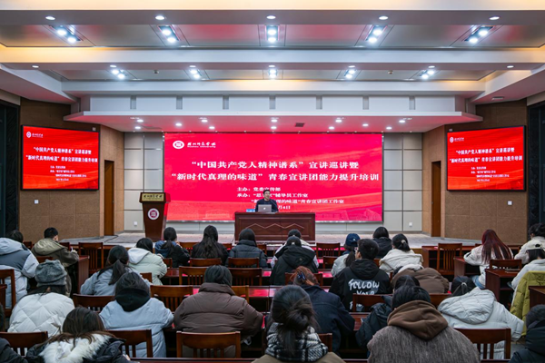 12月4日,“中國共產黨人精神譜系”宣講巡講暨青春宣講團專題培訓會于明達樓126室舉行。本次活動由校黨委宣傳部主辦,“思享家”輔導員工作室、“新時代真理的味道”青春宣講團工作室承辦,學校“新時代真理的味道”青春宣講團代表共計130余人參與培訓。