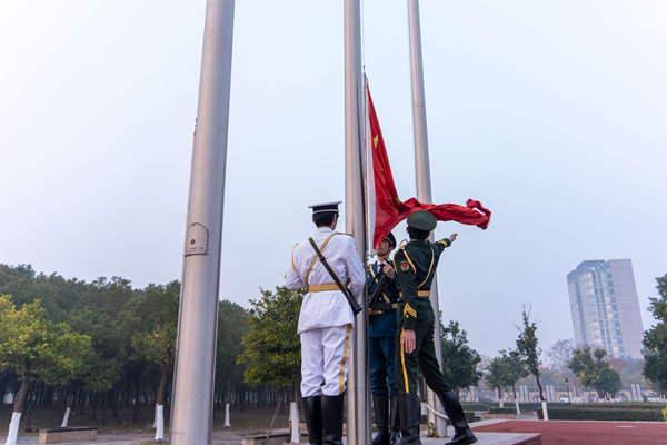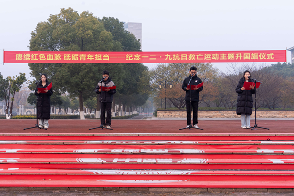 為紀念“一二·九”抗日救亡運動九十周年,引導廣大師生傳承紅色基因、擔當時代使命,12月8日清晨,工學院在長興廣場舉行“賡續紅色血脈 砥礪青年擔當”主題升國旗儀式。宣傳部、學工部負責人,工學院領導班子成員、全體輔導員及300名學生代表參加活動。