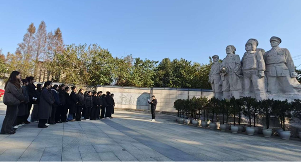 在烈士陵園,全體人員在紀(jì)念碑前整齊列隊,高唱國歌,敬獻(xiàn)鮮花并集體默哀,深切緬懷革命先烈。隨后,隊伍前往錢壯飛紀(jì)念館。在講解員的帶領(lǐng)下,同志們通過歷史圖片、文物和多媒體展示,學(xué)習(xí)了錢壯飛烈士投身革命、潛伏敵營、保衛(wèi)黨中央以及最終壯烈犧牲的光輝事跡,深刻感受其對黨忠誠、敢于犧牲的革命精神。